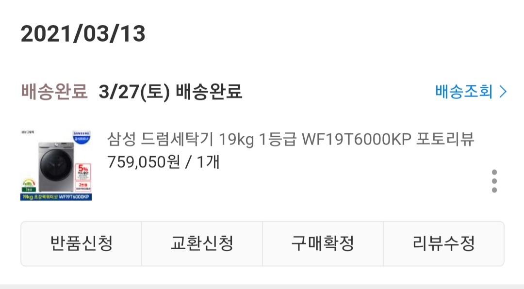 원하는 브랜드로 1등급 세탁기에 용량도 제법크니까
