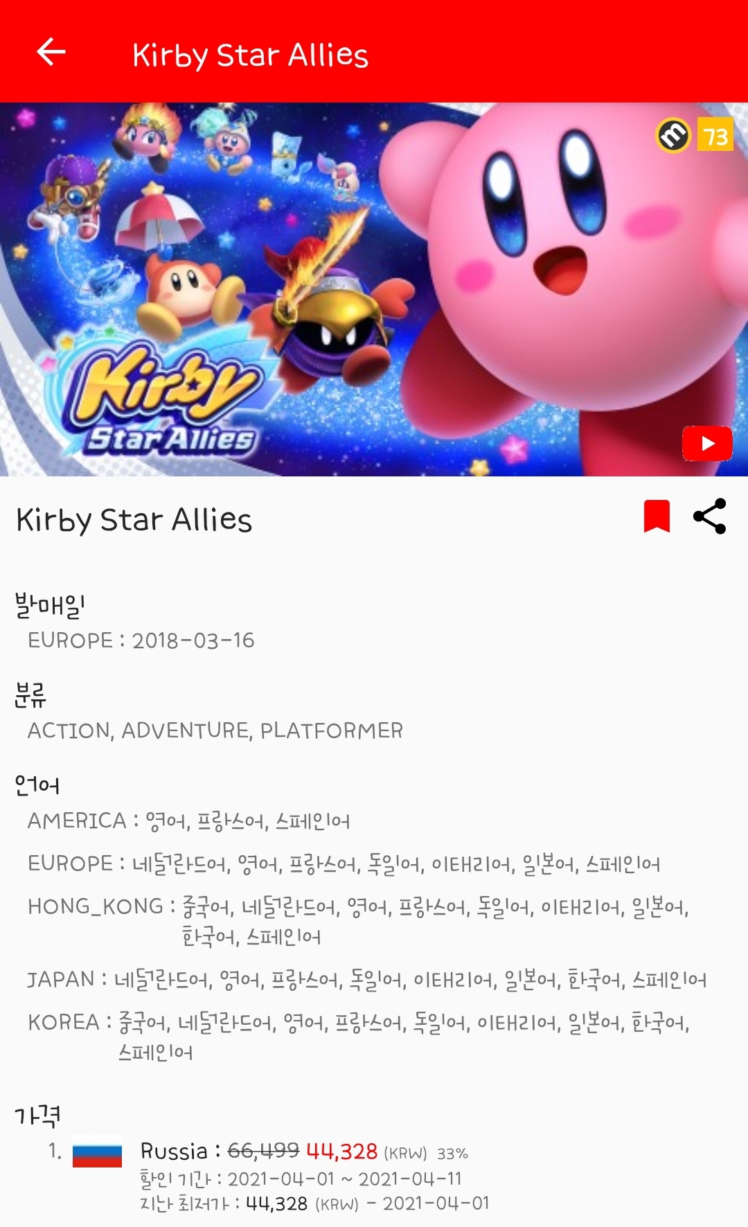 얼마전 부터 별의 커비가 드디어 할인한다.